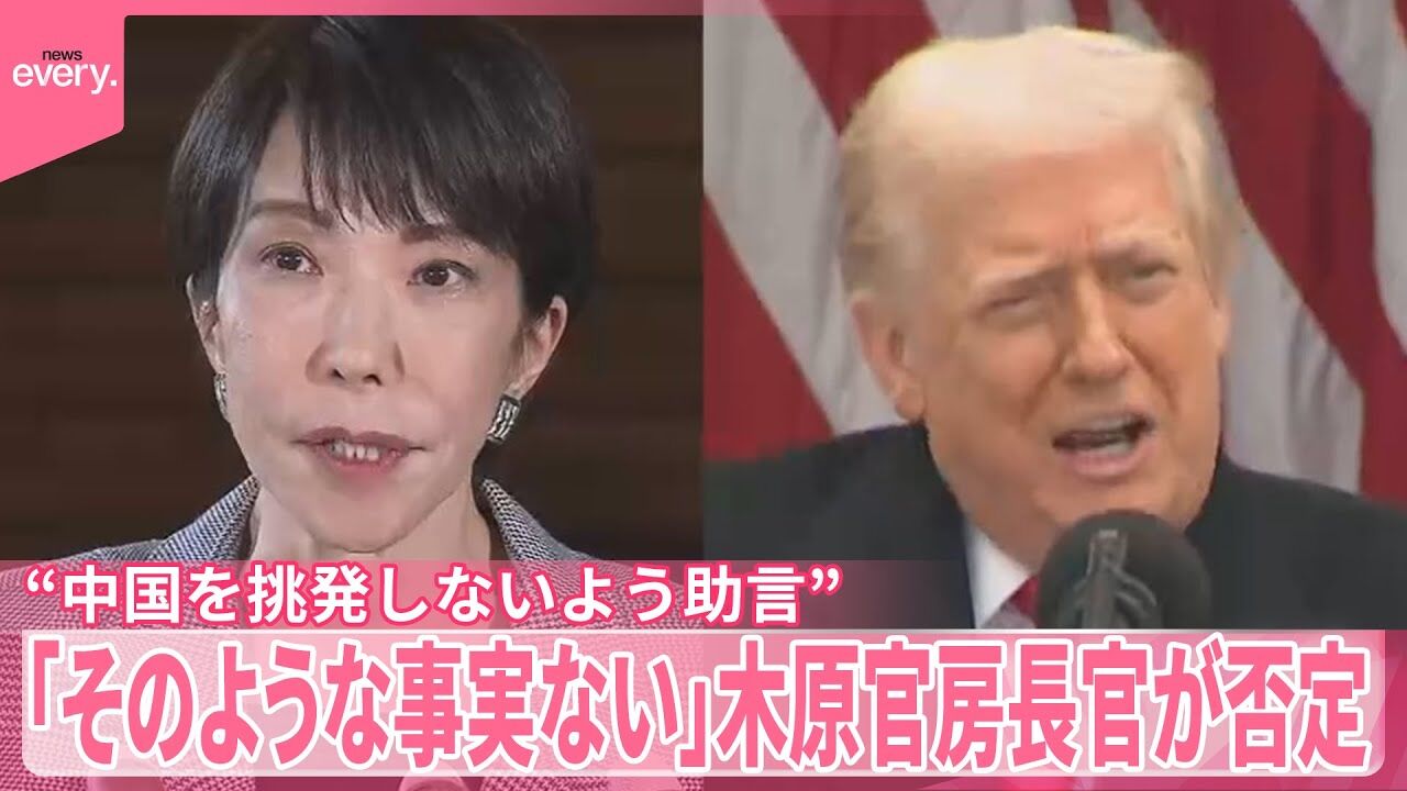 【速報】 米大統領が台湾問題で高市首相に中国挑発しないよう助言との事実ない=日米首脳会談巡り官房長官