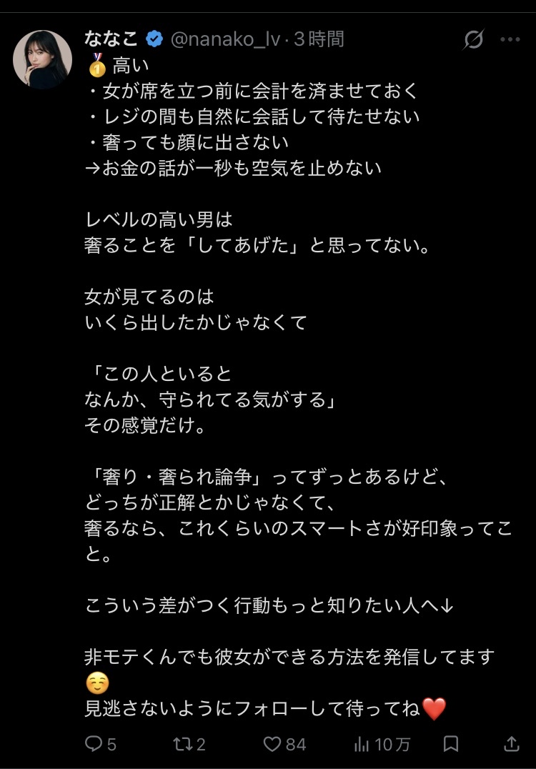 【画像】女子さん、奢り方の格付けを公開