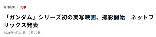 【映画】「ガンダム」シリーズ初の実写映画、製作開始 ネットフリックス発表