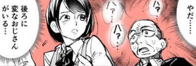 って叫びながら後ろから走り迫り、角をクルッと曲がって横道をそのまま走り去っていく