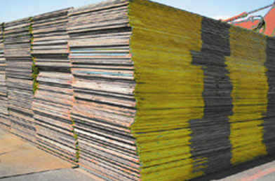 鉄板は縦1.5m、横3m、厚さ2cmどの大きさで、クレーンで吊り上げて移動させ、地面に垂直に立てた状態でした。