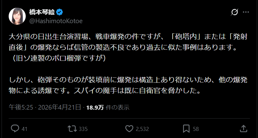 大物愛国言論人、自衛隊戦車爆発はスパイによる誘爆だと主張…