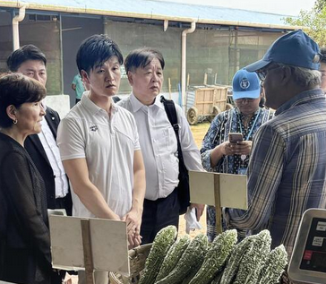 ビスケットや油などの保管庫のほか、コメや野菜、魚の売り場を見て回った。国際協力機構(JICA)がマンゴーやカボチャなどの栽培を指導した菜園があり、管理に携わる女性は鈴木氏に「自分たちで食べたり、売って収入にしたりしている」と説明した。