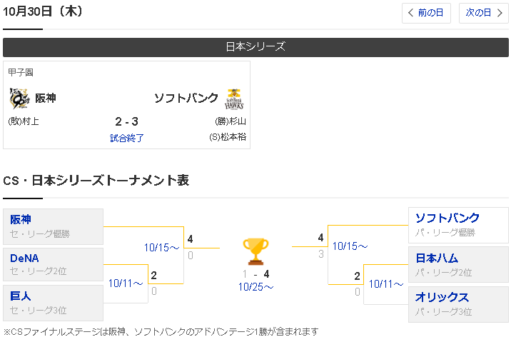 【悲報】セ・リーグ圧倒的王者阪神タイガースさん、ソフトバンクに1勝しかできず終戦